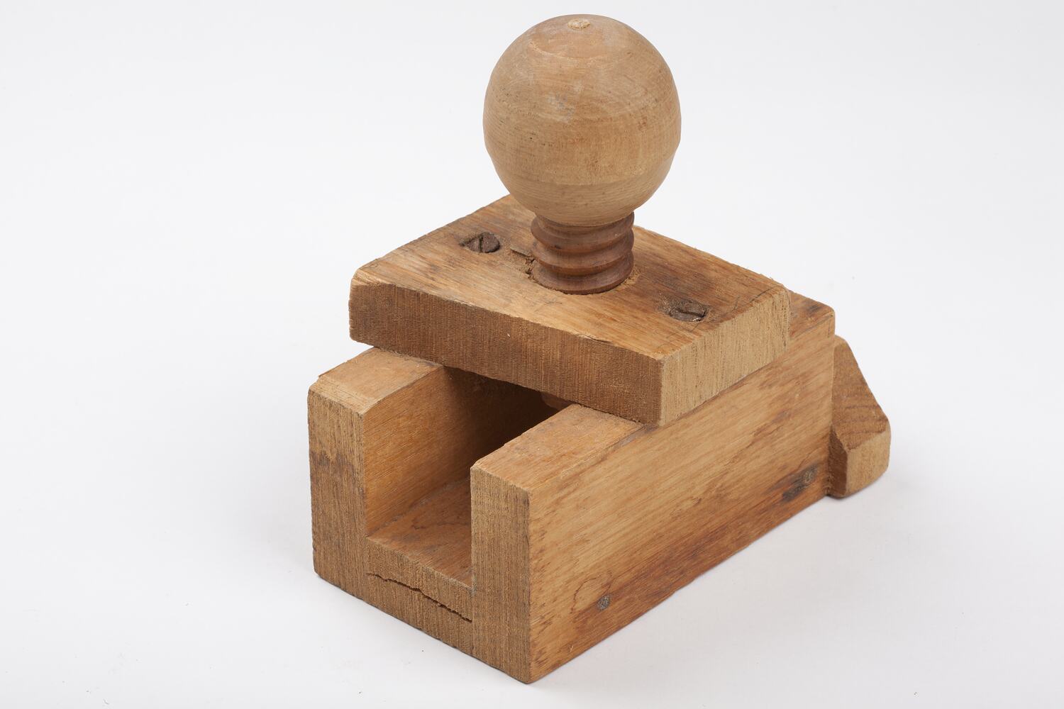 Turned Wooden product sample created by Adolph Bruhn & Son, circa 1970 - 1990. It was found in a pile of woodturned objects in Area B2 at Adolph Bruhn & Son's Wood Turners Shop, 283 Coventry Street, South Melbourne. The business was established by Adolph Bruhn circa 1893 in Little Collins Street, Melbourne. Upon his death in 1919 it was then operated by Adolph's son Sophus Christopher Bruhn. Upon Sophus's death in 1959 his son Sophus Walter Bruhn took over the business. In 1970 Sophus reduced the scale of the business and relocated to South Melbourne. The business closed upon Sophus's death in January 1990.