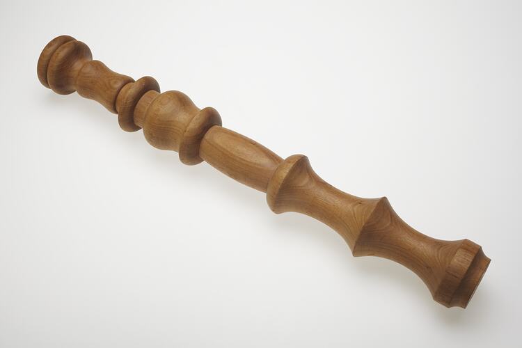 Wooden furniture piece made by Adolph Bruhn & Son, circa 1980s. It was found in Area A at Adolph Bruhn & Son's Wood Turners Shop, 283 Coventry Street, South Melbourne. The business was established by Adolph Bruhn circa 1893 in Little Collins Street, Melbourne. Upon his death in 1919 it was then operated by Adolph's son Sophus Christopher Bruhn. Upon Sophus's death in 1959 his son Sophus Walter Bruhn took over the business. In 1970 Sophus reduced the scale of the business and relocated to South Melbourne. The business closed upon Sophus's death in January 1990.