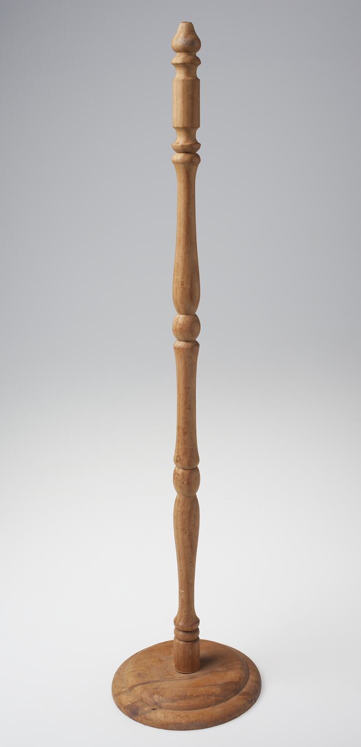 Turned wooden stand created by Adolph Bruhn & Son, circa 1980 - 1990. It was found in pile of woodturned objects in Area B2 at Adolph Bruhn & Son's Wood Turners Shop, 283 Coventry Street, South Melbourne. The business was established by Adolph Bruhn circa 1893 in Little Collins Street, Melbourne. Upon his death in 1919 it was then operated by Adolph's son Sophus Christopher Bruhn. Upon Sophus's death in 1959 his son Sophus Walter Bruhn took over the business. In 1970 Sophus reduced the scale of the business and relocated to South Melbourne. The business closed upon Sophus's death in January 1990.