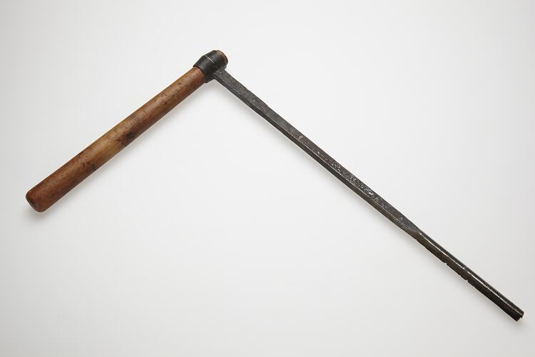 Woodturning tool, circa 1870 - 1960, taken from Area A at Adolph Bruhn & Son's Wood Turners Shop, 283 Coventry Street, South Melbourne. The business was established by Adolph Bruhn circa 1893 in Little Collins Street, Melbourne. Upon his death in 1919 it was then operated by Adolph's son Sophus Christopher Bruhn. Upon Sophus's death in 1959 his son Sophus Walter Bruhn took over the business. In 1970 Sophus reduced the scale of the business and relocated to South Melbourne. The business closed upon Sophus's death in January 1990.