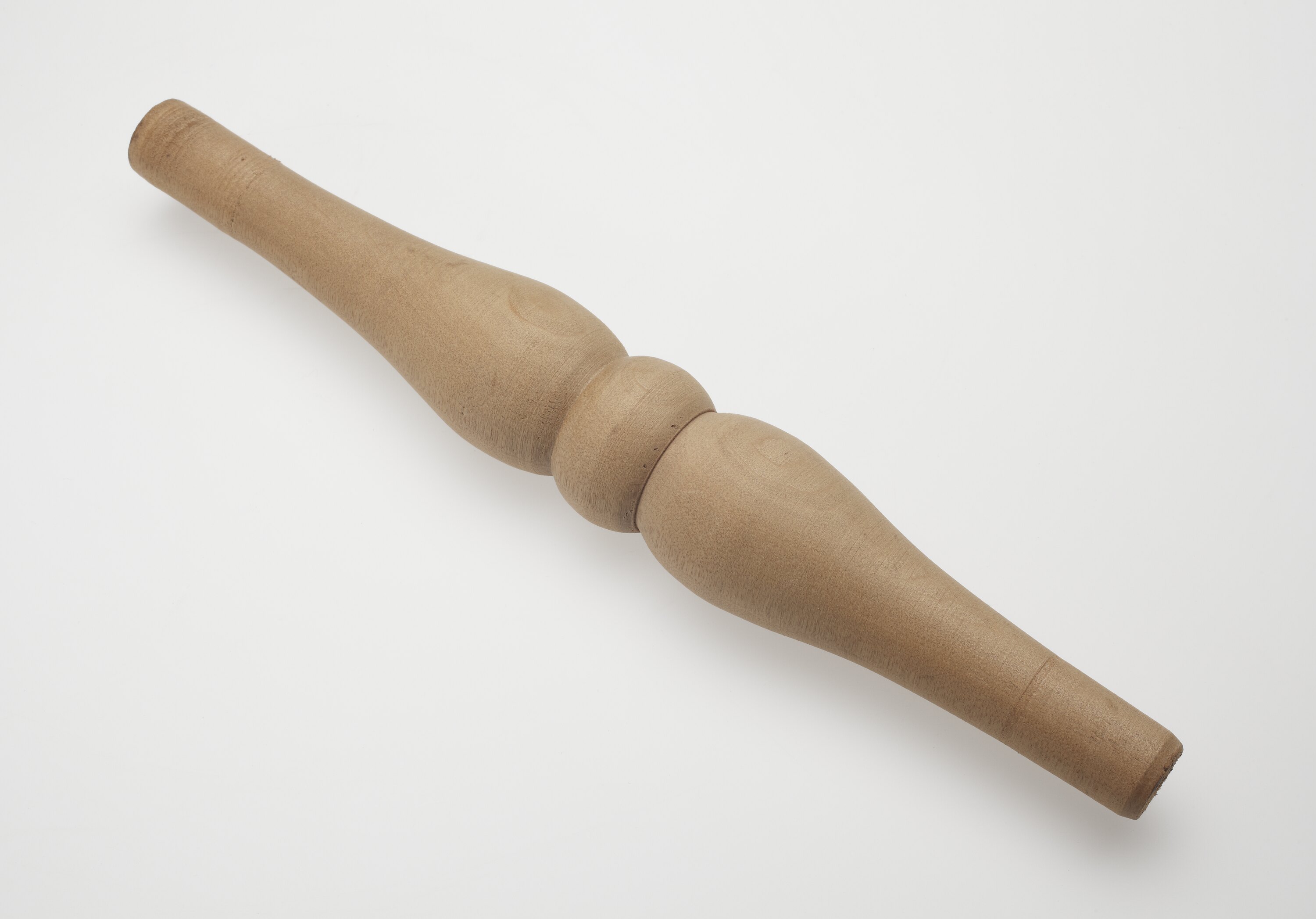 Turned furniture leg. The leg has been fashioned from a single piece of unvarnished wood.
