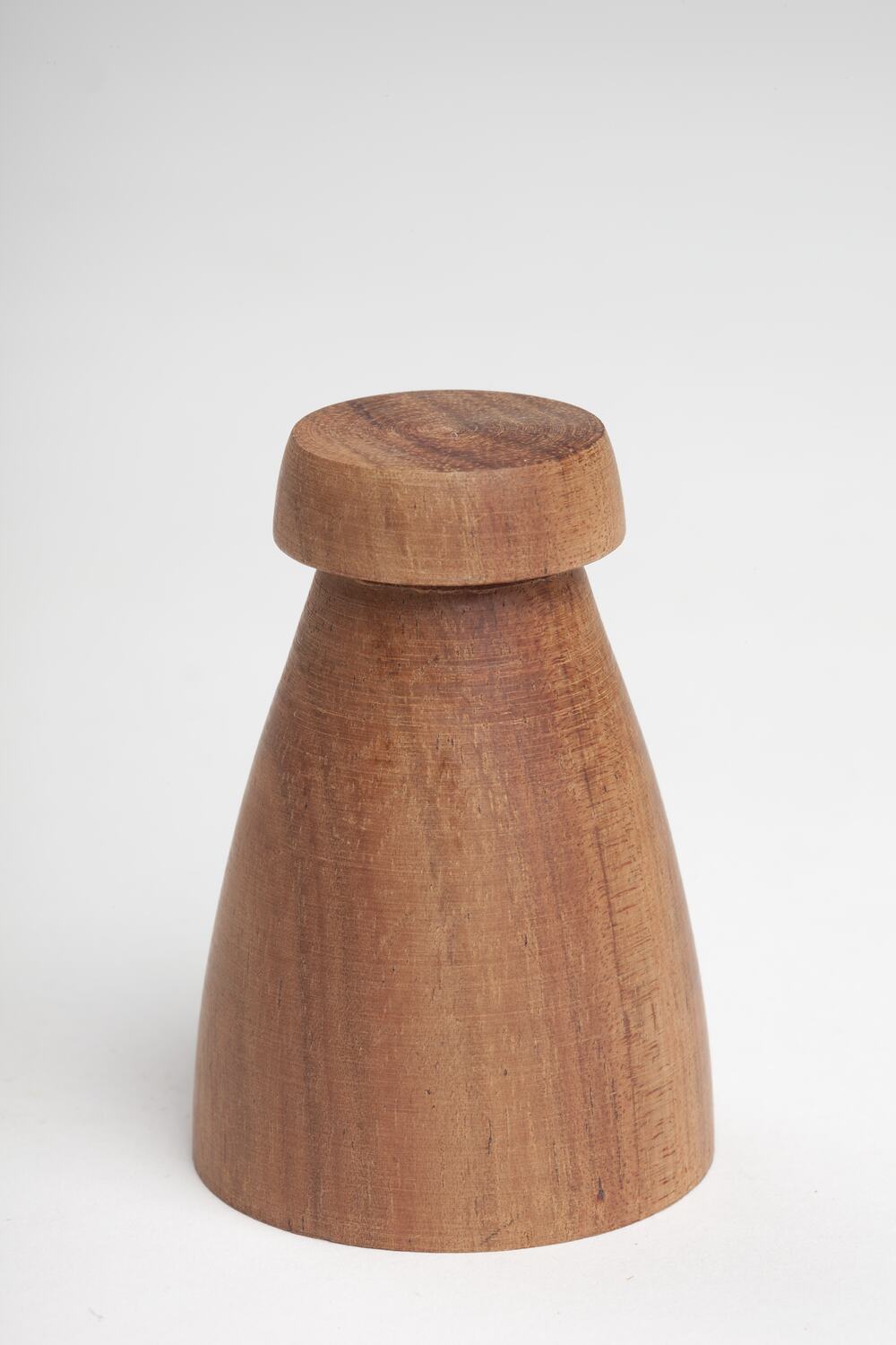 Wooden Black Pawn Chess piece created by Adolph Bruhn & Son, circa 1970 - 1990. It was taken from Area A at Adolph Bruhn & Son's Wood Turners Shop, 283 Coventry Street, South Melbourne. The business was established by Adolph Bruhn circa 1893 in Little Collins Street, Melbourne. Upon his death in 1919 it was then operated by Adolph's son Sophus Christopher Bruhn. Upon Sophus's death in 1959 his son Sophus Walter Bruhn took over the business. In 1970 Sophus reduced the scale of the business and relocated to South Melbourne. The business closed upon Sophus's death in January 1990.