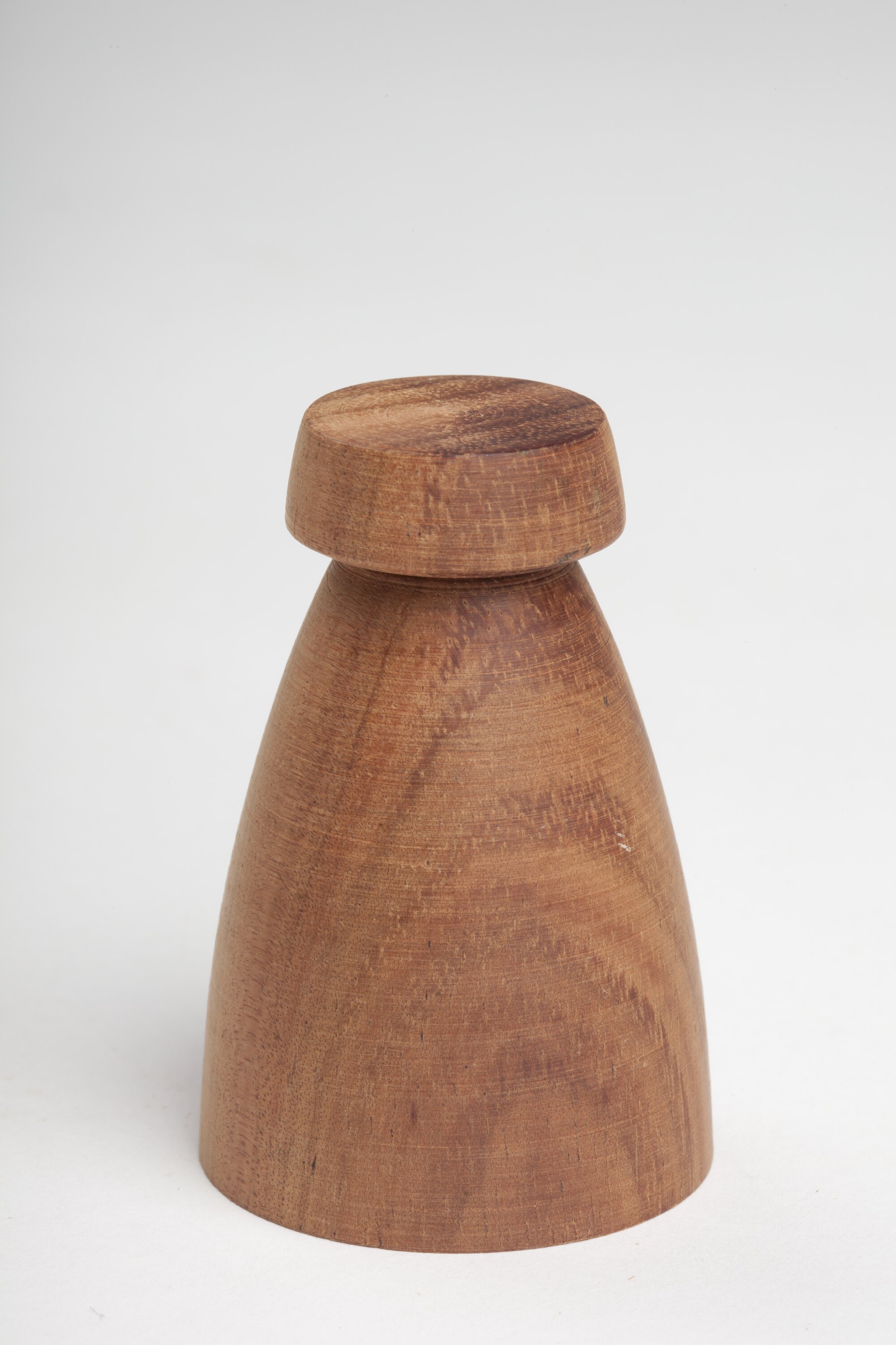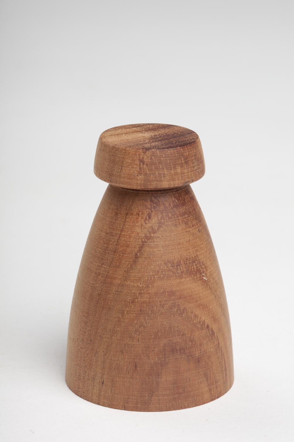 Wooden Black Pawn Chess piece created by Adolph Bruhn & Son, circa 1970 - 1990. It was taken from Area A at Adolph Bruhn & Son's Wood Turners Shop, 283 Coventry Street, South Melbourne. The business was established by Adolph Bruhn circa 1893 in Little Collins Street, Melbourne. Upon his death in 1919 it was then operated by Adolph's son Sophus Christopher Bruhn. Upon Sophus's death in 1959 his son Sophus Walter Bruhn took over the business. In 1970 Sophus reduced the scale of the business and relocated to South Melbourne. The business closed upon Sophus's death in January 1990.