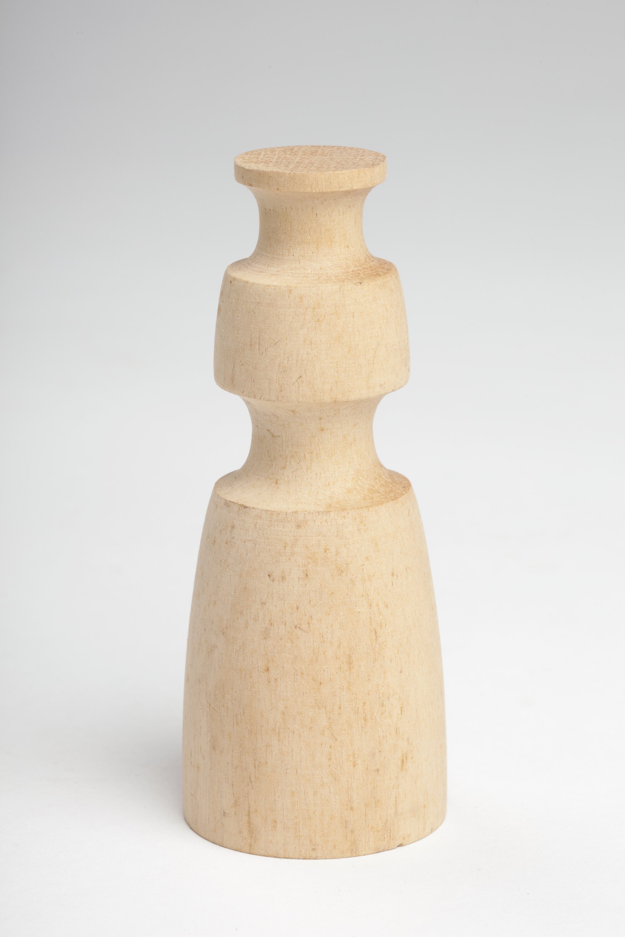 Wooden White Knight Chess piece created by Adolph Bruhn & Son, circa 1970 - 1990. It was taken from Area A at Adolph Bruhn & Son's Wood Turners Shop, 283 Coventry Street, South Melbourne. The business was established by Adolph Bruhn circa 1893 in Little Collins Street, Melbourne. Upon his death in 1919 it was then operated by Adolph's son Sophus Christopher Bruhn. Upon Sophus's death in 1959 his son Sophus Walter Bruhn took over the business. In 1970 Sophus reduced the scale of the business and relocated to South Melbourne. The business closed upon Sophus's death in January 1990.
