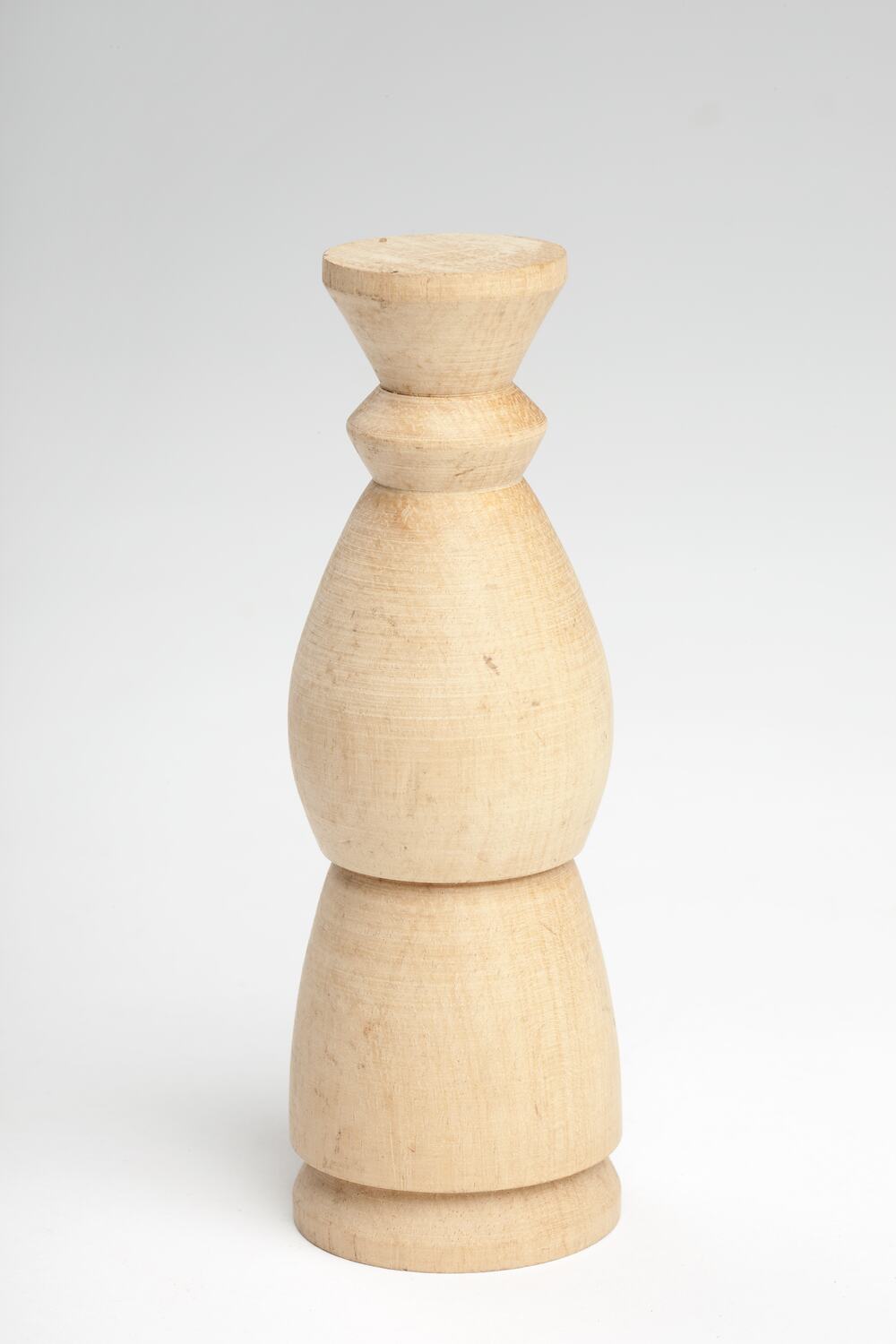 Wooden White Queen Chess piece created by Adolph Bruhn & Son, circa 1970 - 1990. It was taken from Area A at Adolph Bruhn & Son's Wood Turners Shop, 283 Coventry Street, South Melbourne. The business was established by Adolph Bruhn circa 1893 in Little Collins Street, Melbourne. Upon his death in 1919 it was then operated by Adolph's son Sophus Christopher Bruhn. Upon Sophus's death in 1959 his son Sophus Walter Bruhn took over the business. In 1970 Sophus reduced the scale of the business and relocated to South Melbourne. The business closed upon Sophus's death in January 1990.