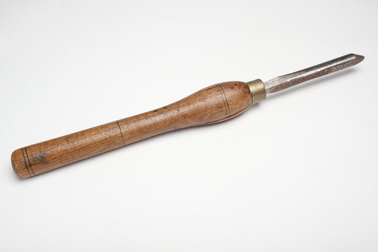 Gouge, circa 1870s-1950s, taken from Area A at Adolph Bruhn & Son's Wood Turners Shop, 283 Coventry Street, South Melbourne. The business was established by Adolph Bruhn circa 1893 in Little Collins Street, Melbourne. Upon his death in 1919 it was then operated by Adolph's son Sophus Christopher Bruhn. Upon Sophus's death in 1959 his son Sophus Walter Bruhn took over the business. In 1970 Sophus reduced the scale of the business and relocated to South Melbourne. The business closed upon Sophus's death in January 1990.