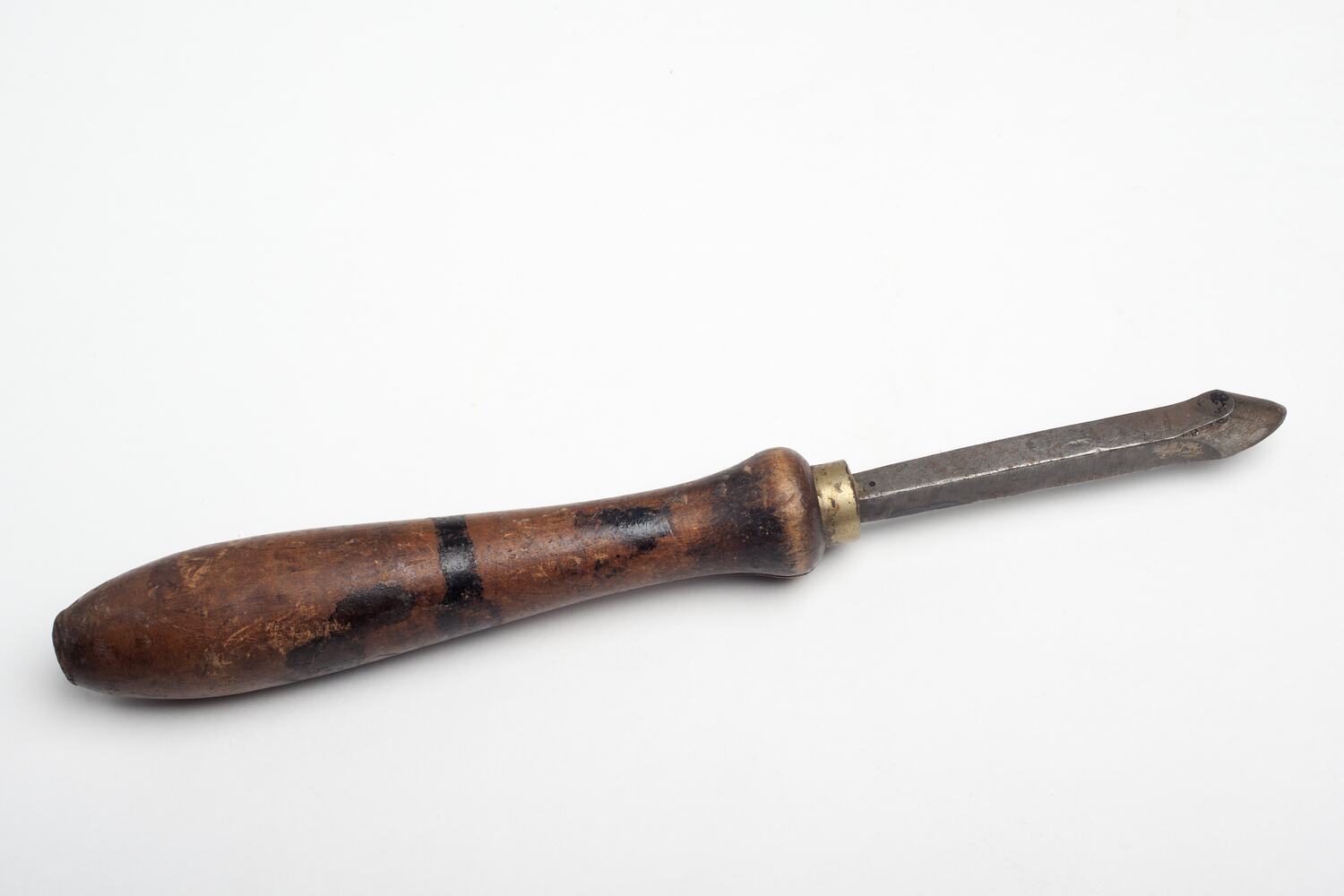 Woodturning Tool circa 1920s-1950s. It was found in Area B1 at Adolph Bruhn & Son's Wood Turners Shop, 283 Coventry Street, South Melbourne. The business was established by Adolph Bruhn circa 1893 in Little Collins Street, Melbourne. Upon his death in 1919 it was then operated by Adolph's son Sophus Christopher Bruhn. Upon Sophus's death in 1959 his son Sophus Walter Bruhn took over the business. In 1970 Sophus reduced the scale of the business and relocated to South Melbourne. The business closed upon Sophus's death in January 1990.