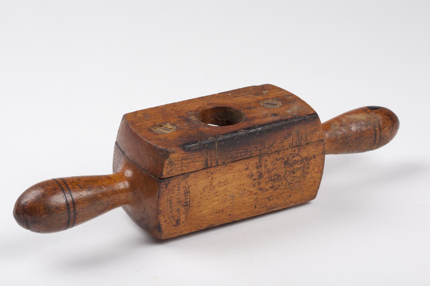 Woodworking Screw Box made by Host Marples Hermitage Works, circa 1920s-1950s. It was found in Area E3 at Adolph Bruhn & Son's Wood Turners Shop, 283 Coventry Street, South Melbourne. The business was established by Adolph Bruhn circa 1893 in Little Collins Street, Melbourne. Upon his death in 1919 it was then operated by Adolph's son Sophus Christopher Bruhn. Upon Sophus's death in 1959 his son Sophus Walter Bruhn took over the business. In 1970 Sophus reduced the scale of the business and relocated to South Melbourne. The business closed upon Sophus's death in January 1990.