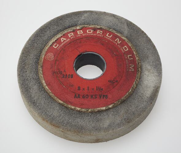 Printed on label: CARBORUNDUM/CARBORUNDUM PTY. LTD., SETTLEMENT ROAD, THOMASTOWN, VICTORIA, 3074, AUSTRALIA/ MOS/3105/4604/8 X 1 x 1 1/4/AA 60 KSVF8.