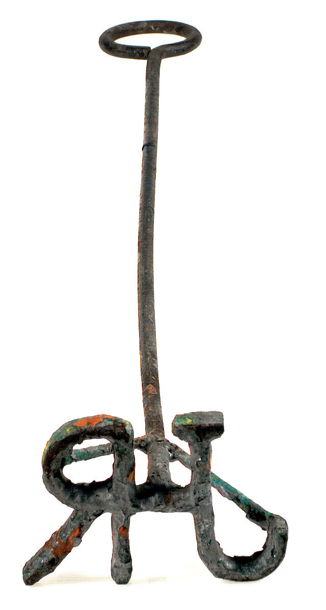 Sheep branding iron. Brand letters "JR" reversed. Used at Newmarket Saleyards. Possibly used for JR Ralph Meat Company.