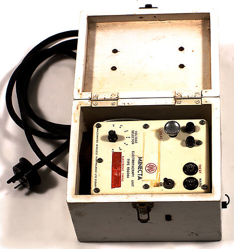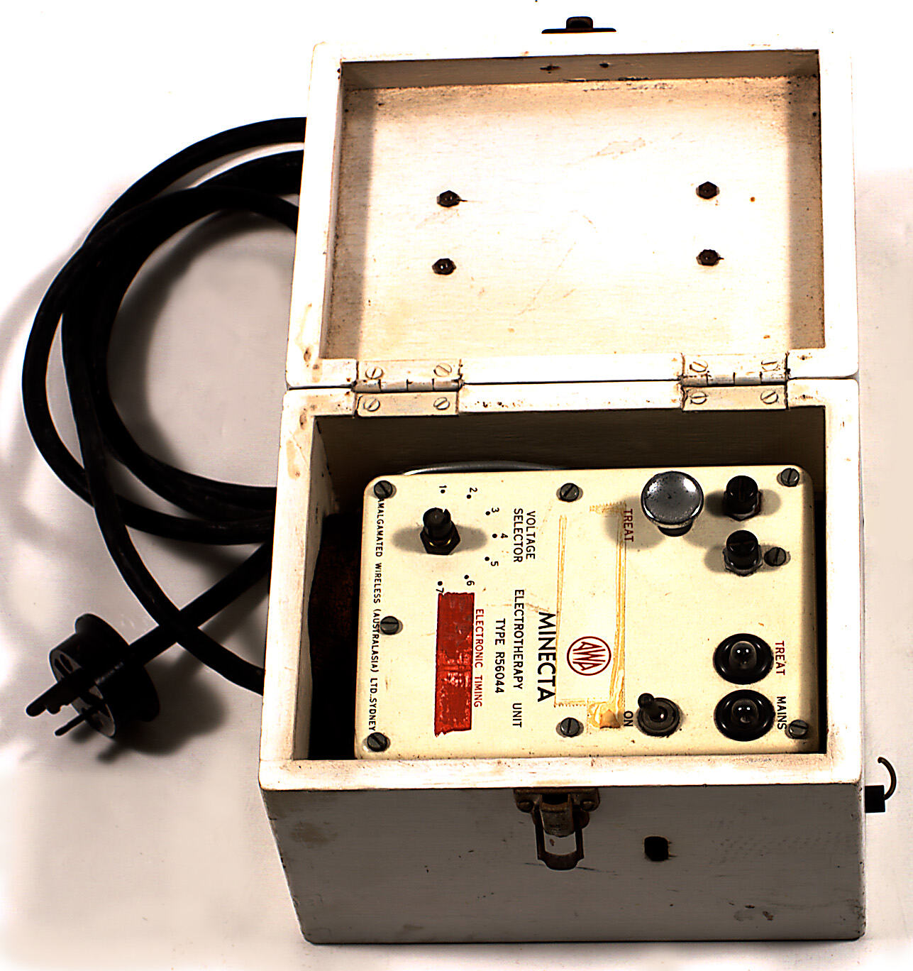 Used for electro-convulsive therapy treatment on patients in mental health hospitals in Victoria, Australia. Made by Amalgamated Wireless (Australasia) Ltd. (AWA), circa 1953 - 1960