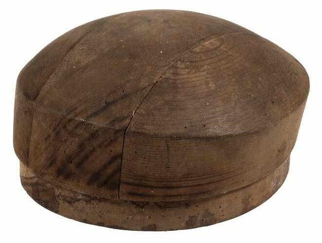Wooden hat block with removable sections.