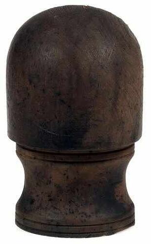 Wooden squat hat block used to mould leather driving and flying helmets made at Simpson's Gloves Pty Ltd, Richmond. Made from Australian cedar by Robert Godfrey Pty Ltd, Melbourne, circa 1920s.