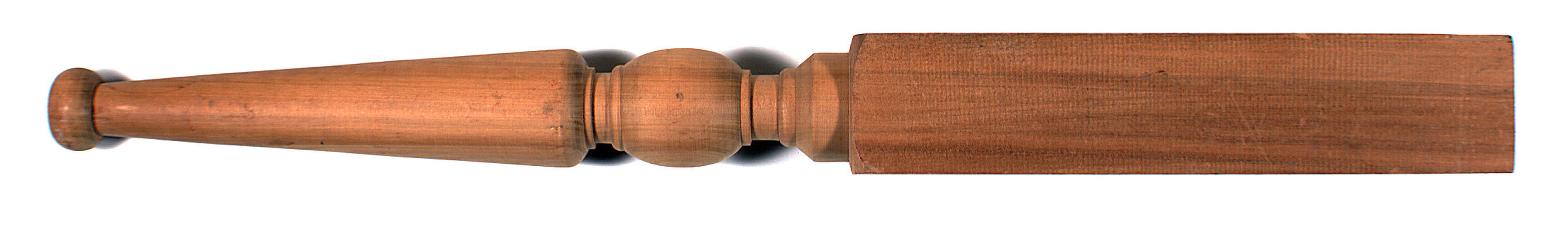 Wooden post created by Adolph Bruhn & Son, circa 1975-1990. It was found in Area A at Adolph Bruhn & Son's Wood Turners Shop, 283 Coventry Street, South Melbourne. The business was established by Adolph Bruhn circa 1893 in Little Collins Street, Melbourne. Upon his death in 1919 it was then operated by Adolph's son Sophus Christopher Bruhn. Upon Sophus's death in 1959 his son Sophus Walter Bruhn took over the business. In 1970 Sophus reduced the scale of the business and relocated to South Melbourne. The business closed upon Sophus's death in January 1990.