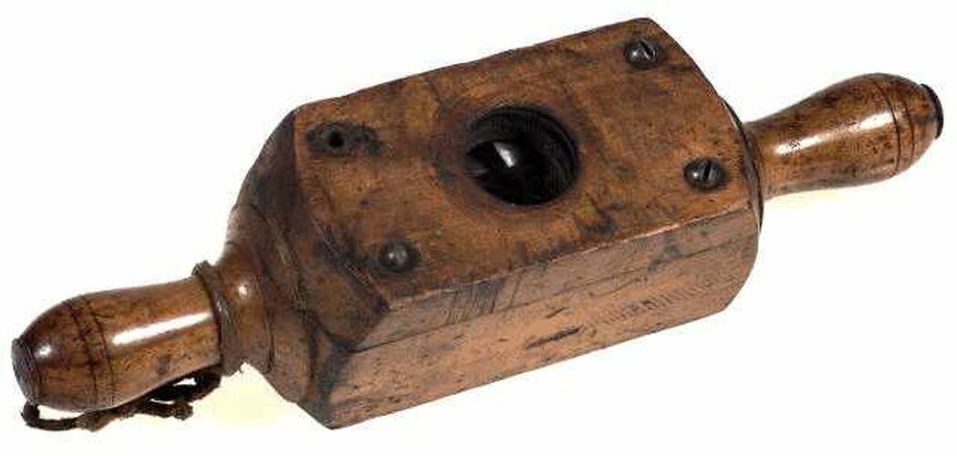 Screw box for cutting wooden threads. Made by A. Schafer, circa 1900-1940.