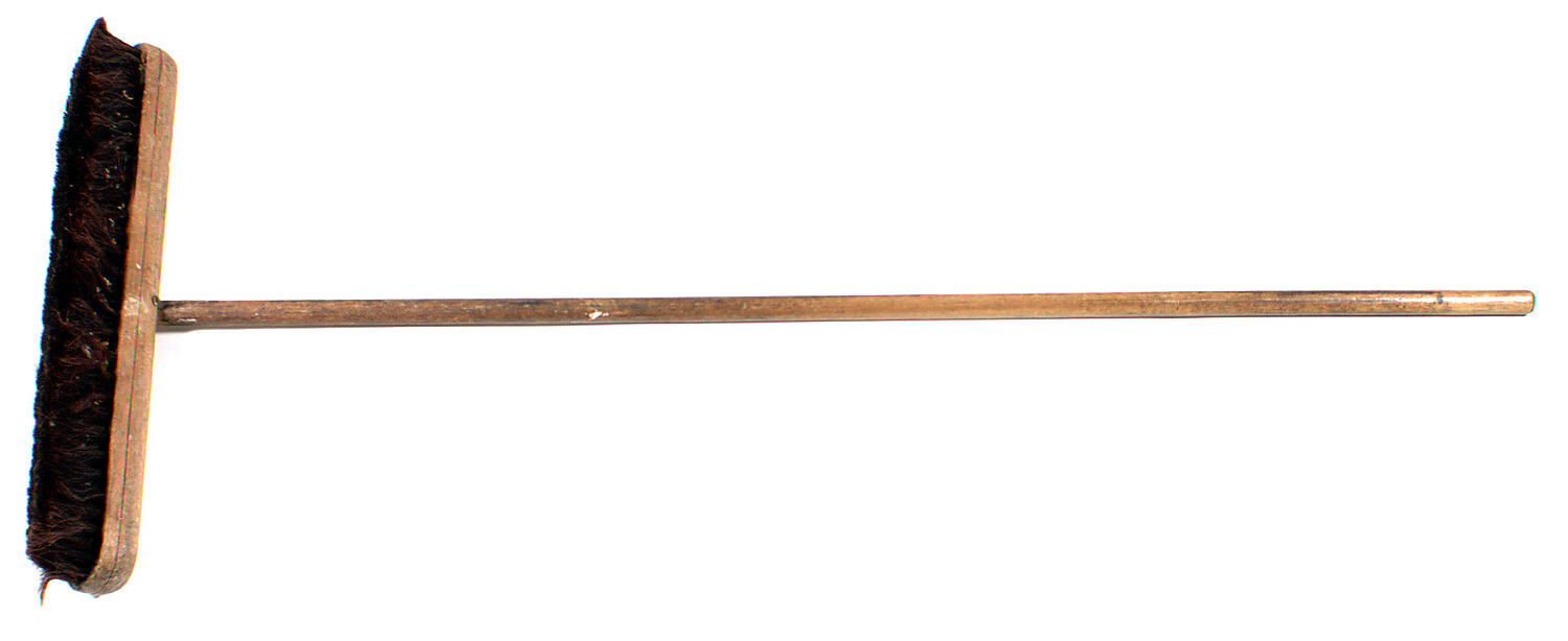 Horsehair broom with a wooden head and handle. Found in Area C of workshop.