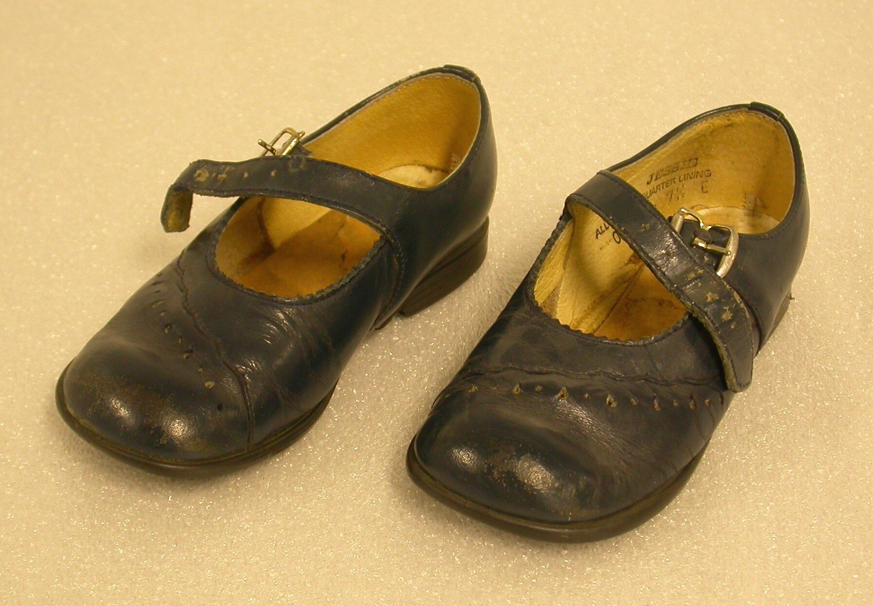 Raised on soles: Clarks/MADE IN AUSTRALIA/SYNTHETIC SOLE/7 1/2. Stamped on insides: JESSIE/ALL LEATHER QUARTER LINING/046 7 1/2 E.