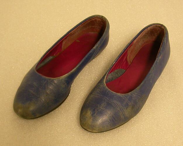 Worn by Alice McCabe, daughter of the donor, Honor Godfrey, when the family lived in Highett Street, Richmond, Melbourne. Alice was born in London in 1984. Most of her shoes were purchased from shop, Betsy Pryam in Burke Road, and were relatively expensive at $50-$60 per pair. The donor was recommended to this supplier by a friend, since she was a stranger to Melbourne and Australia. She was conscious of the shoes being 'Australian' - they were not particularly what she would have chosen had they been living in England. The shoes were chosen both for their convenience and to match the colour of Alice's clothes. The donor decided to collect all of Alice's shoes over a period of several years.