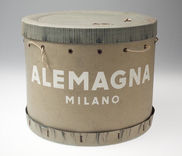 Panettone container brought out to Australia by Laura Mecca in 1990 during one of her visits home to Italy. Panettone is the traditional Christmas cake of Milan, in northern Italy, where it originated over 200 years ago. It was manufactured by Motta.