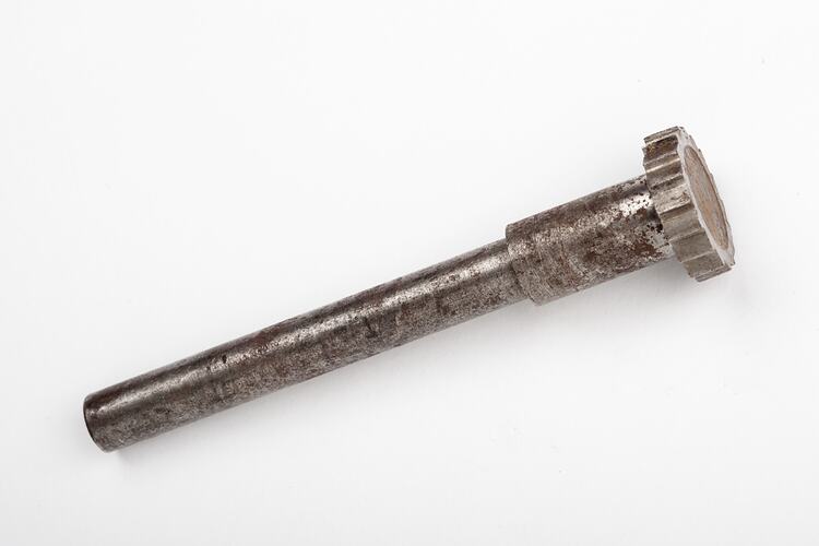 Channeling Tool made circa 1950s-1980s. It was held within wooden tap container (SH 912280) in Area A at Adolph Bruhn & Son's Wood Turners Shop, 283 Coventry Street, South Melbourne. The business was established by Adolph Bruhn circa 1893 in Little Collins Street, Melbourne. Upon his death in 1919 it was then operated by Adolph's son Sophus Christopher Bruhn. Upon Sophus's death in 1959 his son Sophus Walter Bruhn took over the business. In 1970 Sophus reduced the scale of the business and relocated to South Melbourne. The business closed upon Sophus's death in January 1990.