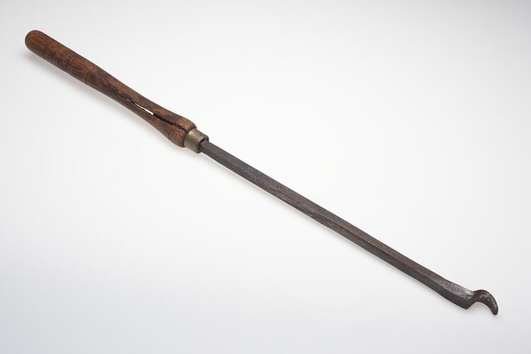 Turning Chisel circa 1890s-1950s. It was taken from Area B1 at Adolph Bruhn & Son's Wood Turners Shop, 283 Coventry Street, South Melbourne. The business was established by Adolph Bruhn circa 1893 in Little Collins Street, Melbourne. Upon his death in 1919 it was then operated by Adolph's son Sophus Christopher Bruhn. Upon Sophus's death in 1959 his son Sophus Walter Bruhn took over the business. In 1970 Sophus reduced the scale of the business and relocated to South Melbourne. The business closed upon Sophus's death in January 1990.