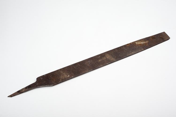 Turning Chisel made by Wiltshire, circa 1970 - 1990. It was found in a wire basket in Area B1 at Adolph Bruhn & Son's Wood Turners Shop, 283 Coventry Street, South Melbourne. The business was established by Adolph Bruhn circa 1893 in Little Collins Street, Melbourne. Upon his death in 1919 it was then operated by Adolph's son Sophus Christopher Bruhn. Upon Sophus's death in 1959 his son Sophus Walter Bruhn took over the business. In 1970 Sophus reduced the scale of the business and relocated to South Melbourne. The business closed upon Sophus's death in January 1990.