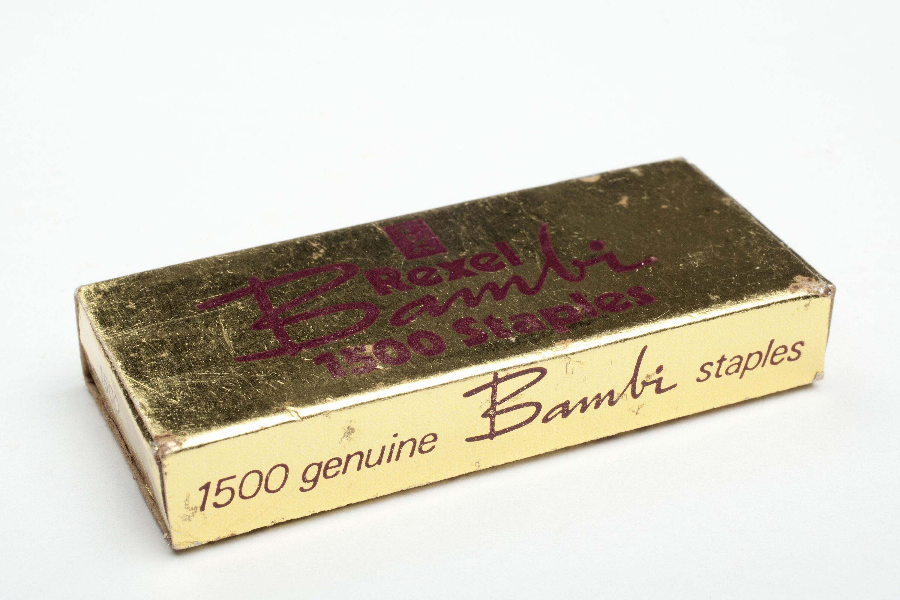 Printed on box: REXEL/BAMBI/1500 STAPLES/ 1500 GENUINE BAMBI STAPLES/USE ONLY GENUINE REXEL STAPLES/IN YOUR BAMBI STAPLER.