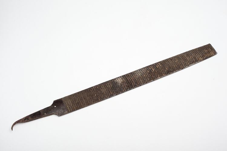 Steel Cabinet Rasp made by Nicholson, circa 1900s-1950s. It was taken from Area C at Adolph Bruhn & Son's Wood Turners Shop, 283 Coventry Street, South Melbourne. The business was established by Adolph Bruhn circa 1893 in Little Collins Street, Melbourne. Upon his death in 1919 it was then operated by Adolph's son Sophus Christopher Bruhn. Upon Sophus's death in 1959 his son Sophus Walter Bruhn took over the business. In 1970 Sophus reduced the scale of the business and relocated to South Melbourne. The business closed upon Sophus's death in January 1990.