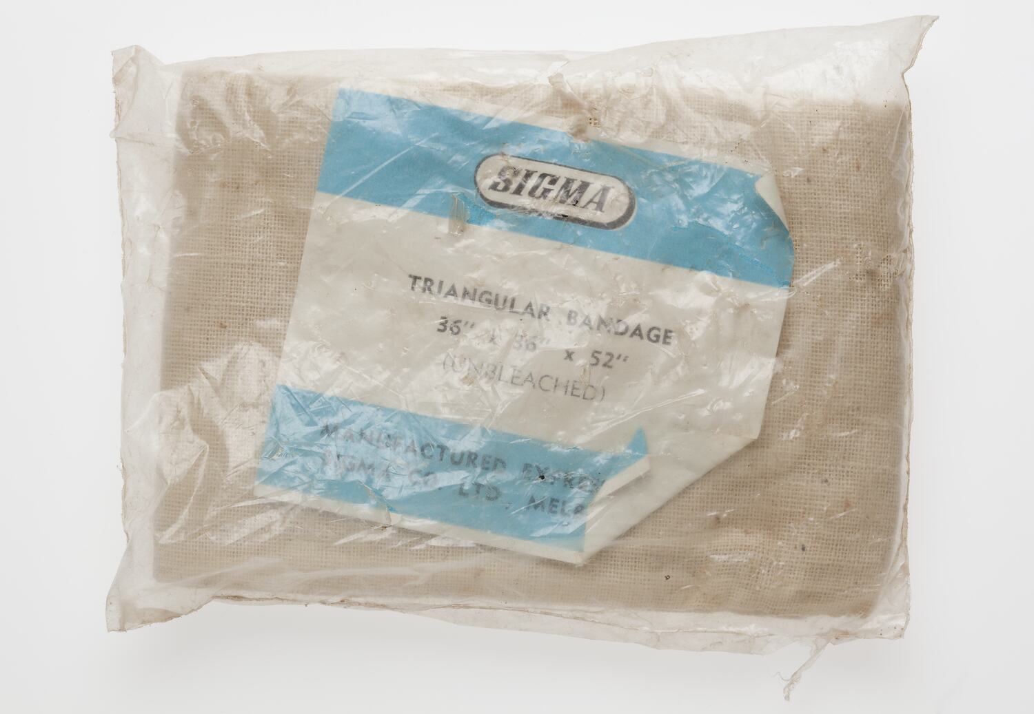 Printed label: SIGMA/TRIANGULAR BANDAGE/36" x 36" x 52"/(UNBLEACHED)/MANUFACTURED EXPRESSLY FOR/SIGMA CO. LTD. MELB., AUST.