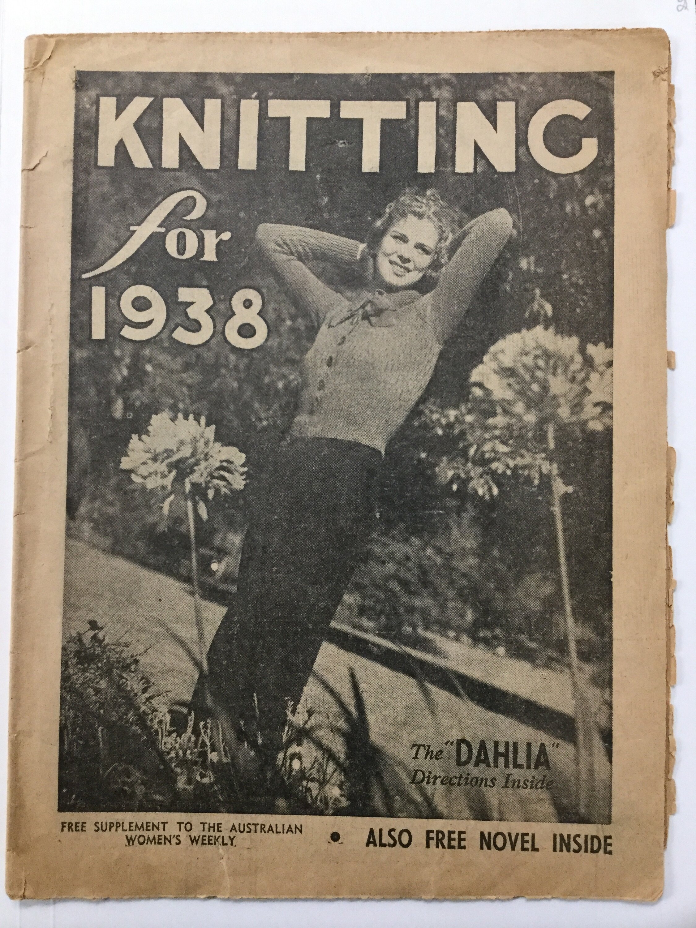 Printed front cover: KNITTING / for / 1938 / FREE SUPPLEMENT TO THE AUSTRALIAN / WOMEN'S WEEKLY ALSO FREE NOVEL INSIDE.