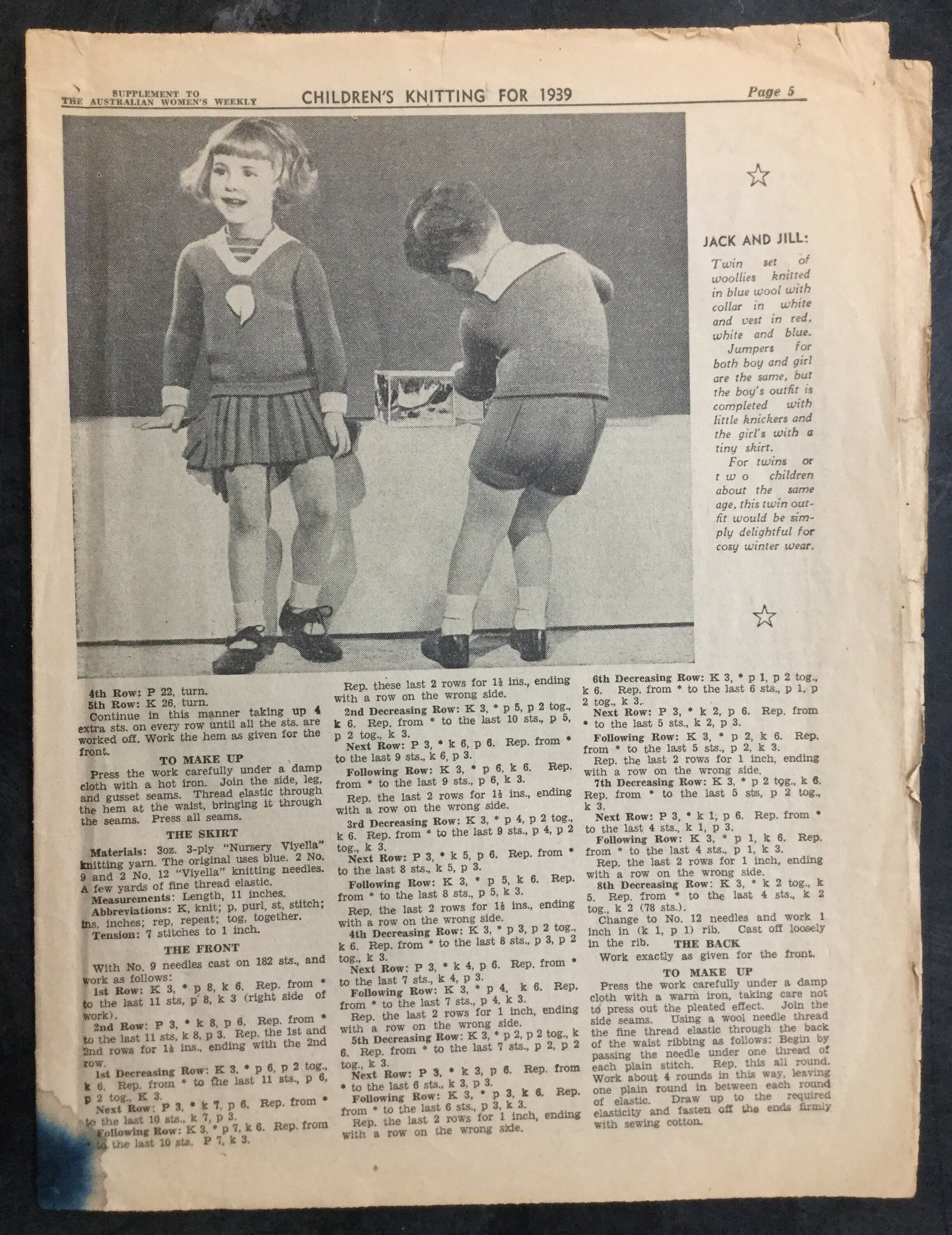 Text: SUPPLEMENT TO / THE AUSTRALIAN WOMEN'S WEEKLY CHILDREN'S KNITTING FOR 1939.