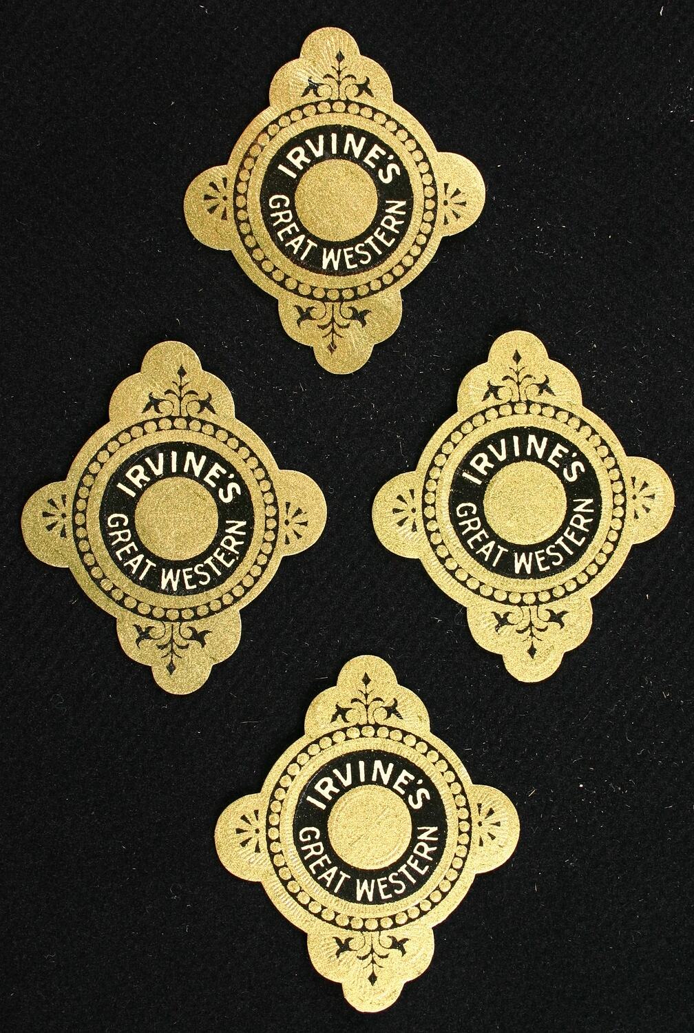 Labels are printed in black and gold and read: "Irvine's Great Western".