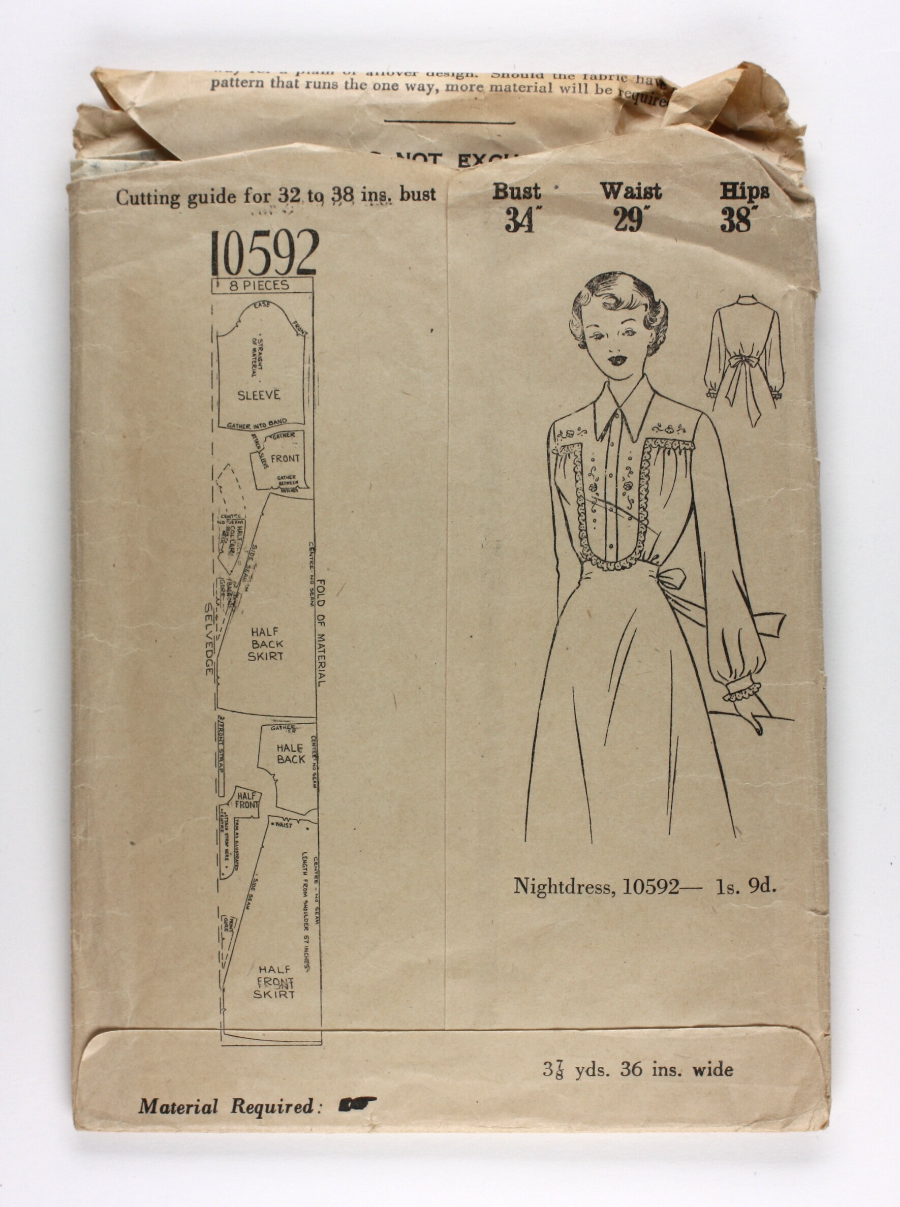 Front envelope: 'Cutting guide for 32 to 38 ins. bust / Bust Waist Hips / 34" 29" 38" / Nightdress, 10592 - 1s. 9d.'