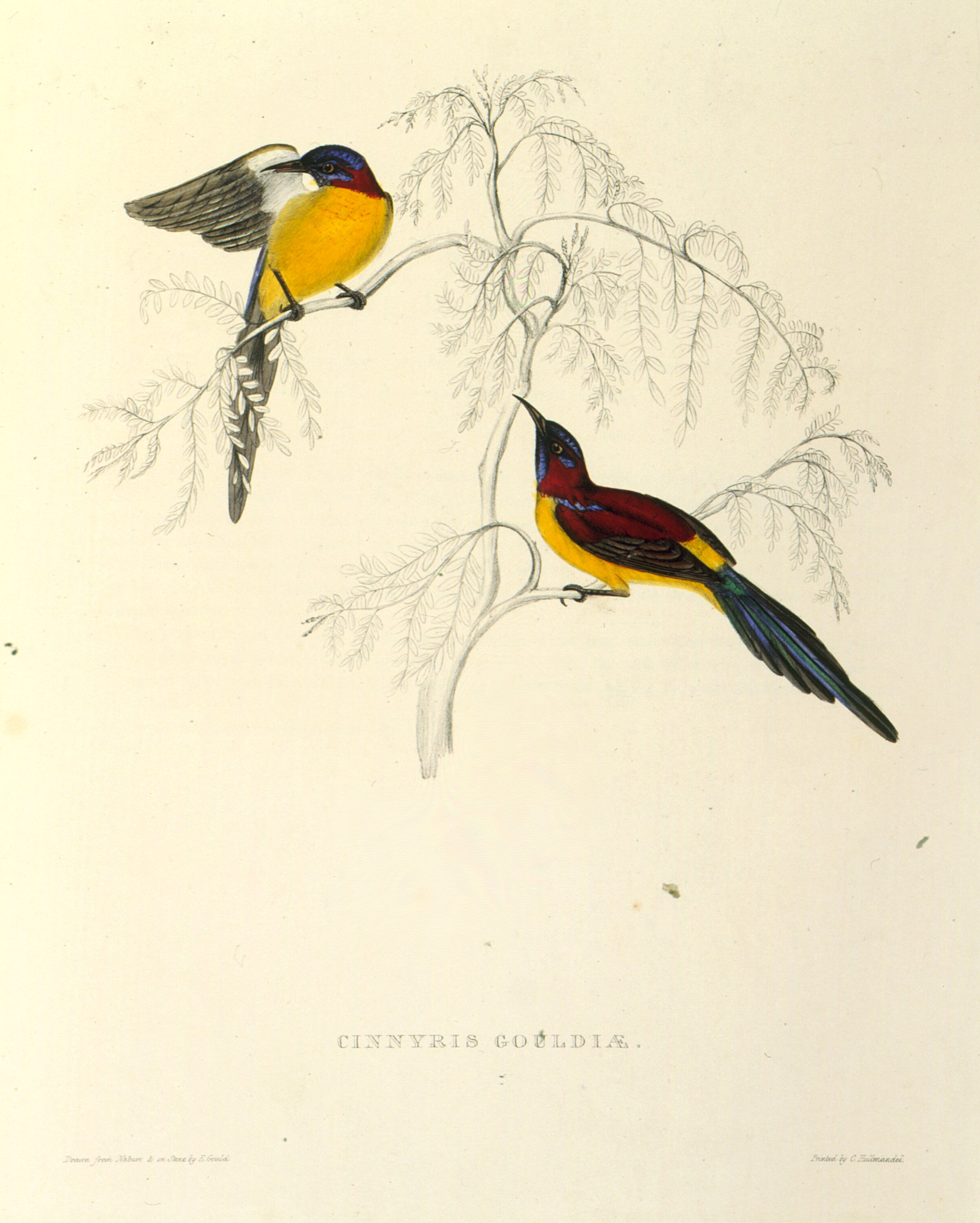 Gould published the work and was also co-author with Nicholas Vigors. He closely oversaw the artistic production of the plates. -