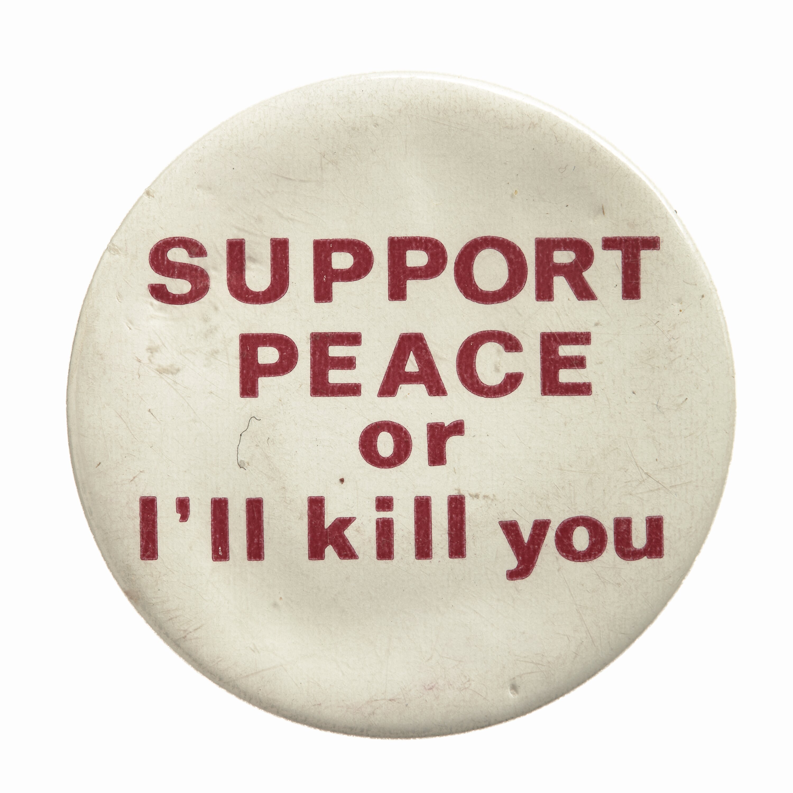 Printed obverse: SUPPORT/ PEACE/ or/ I'll kill you