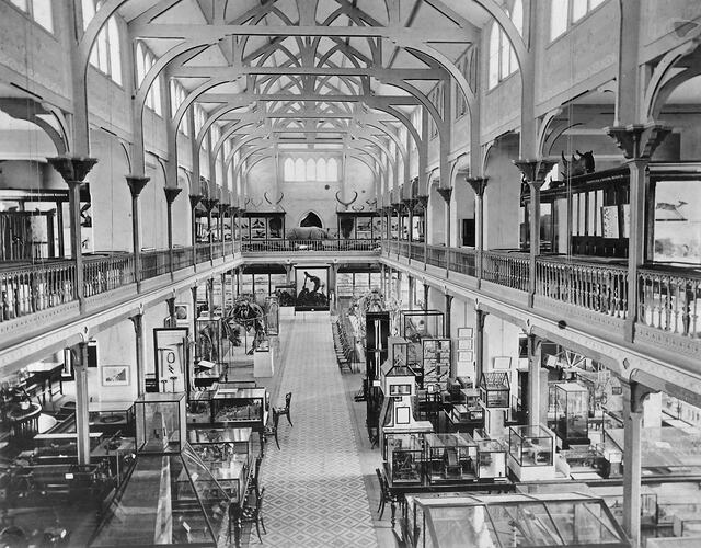 Photograph taken by Charles Nettleton of the interior of the first National Museum of Victoria at Melbourne University, Victoria, 1870.