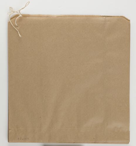 Bundle of brown paper bags, used in the Old Lolly Shop, circa 1974.