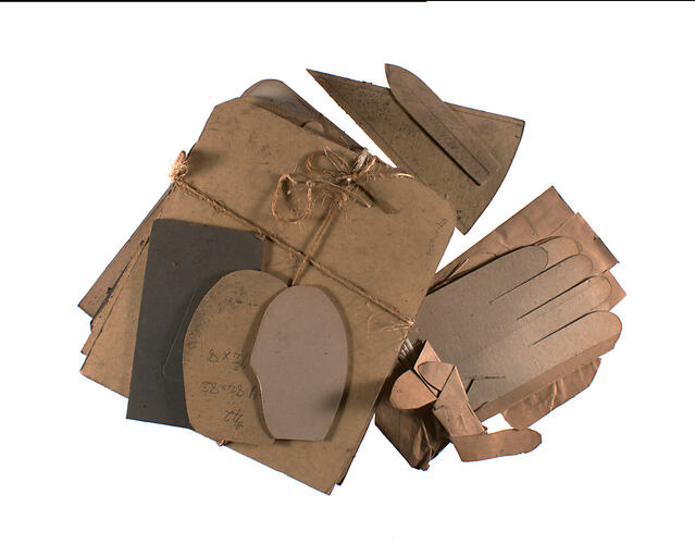 Glove patterns and cutters used at Simpson's Gloves Pty Ltd, Richmond. The metal and cardboard patterns date from 1970s.