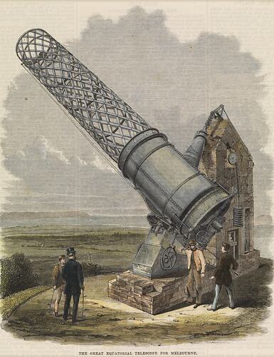 Printed text: THE GREAT EQUATORIAL TELESCOPE FOR MELBOURNE