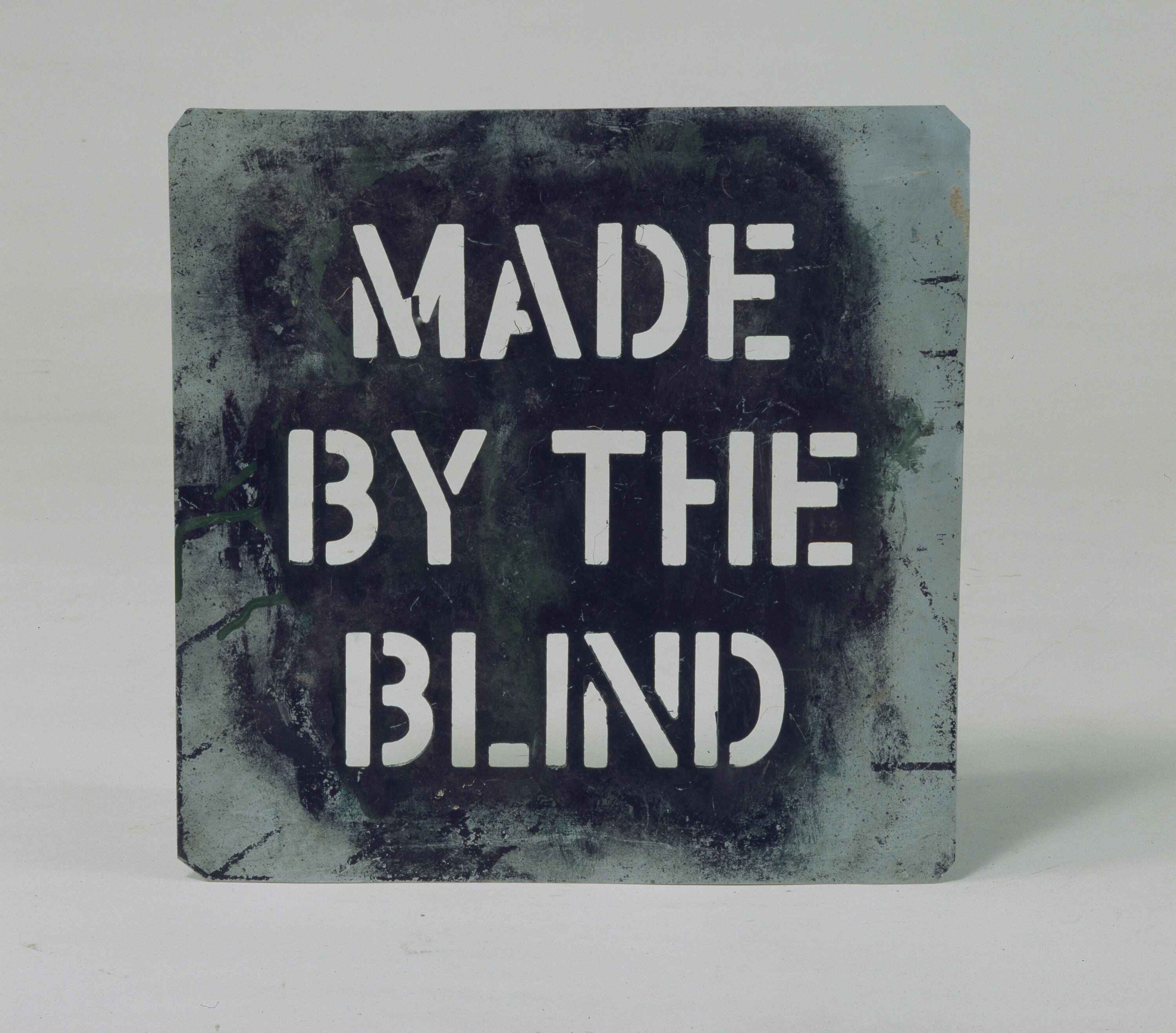 Stencil with the wording 'Made by the Blind' manufactured circa 1985. It was was used by visually impaired workers in the matmaking workshop of the Royal Victorian Institute for the Blind to label mats. This one was probably the third one made for the workshop, the original stencils were made of brass.