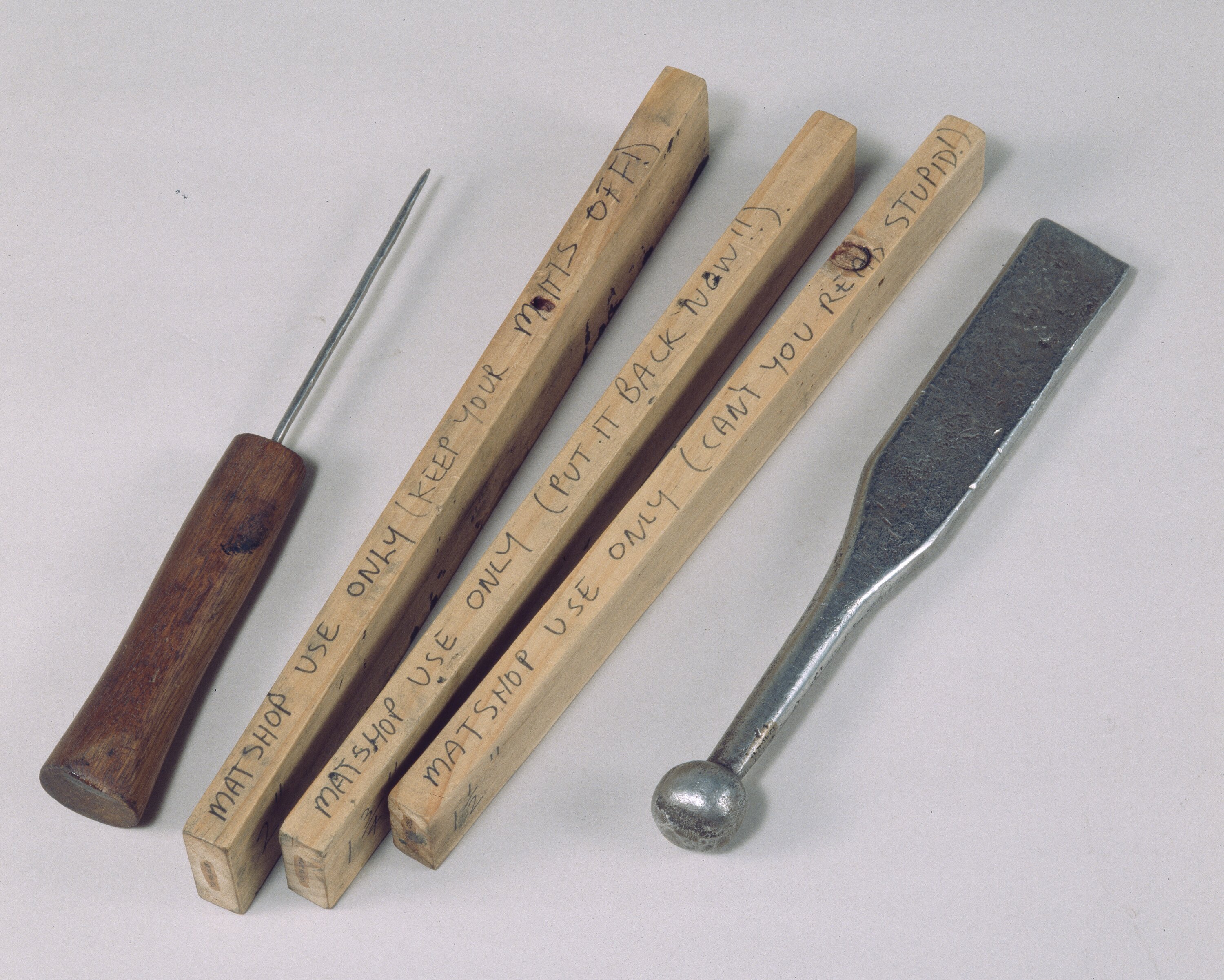On front, handwritten: 13/4". On top edge, hand written: MATSHOP USE ONLY (PUT IT BACK NOW!!).