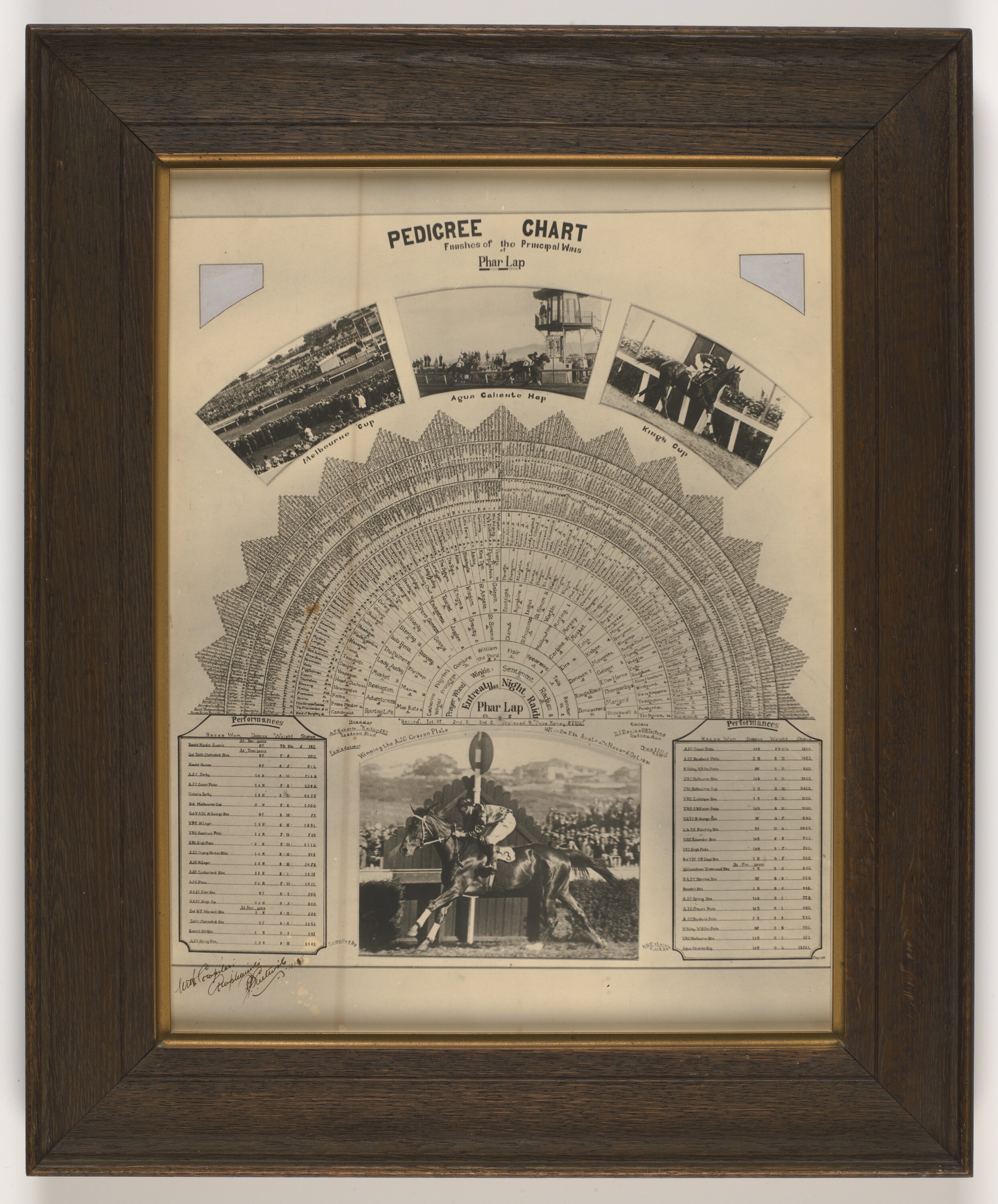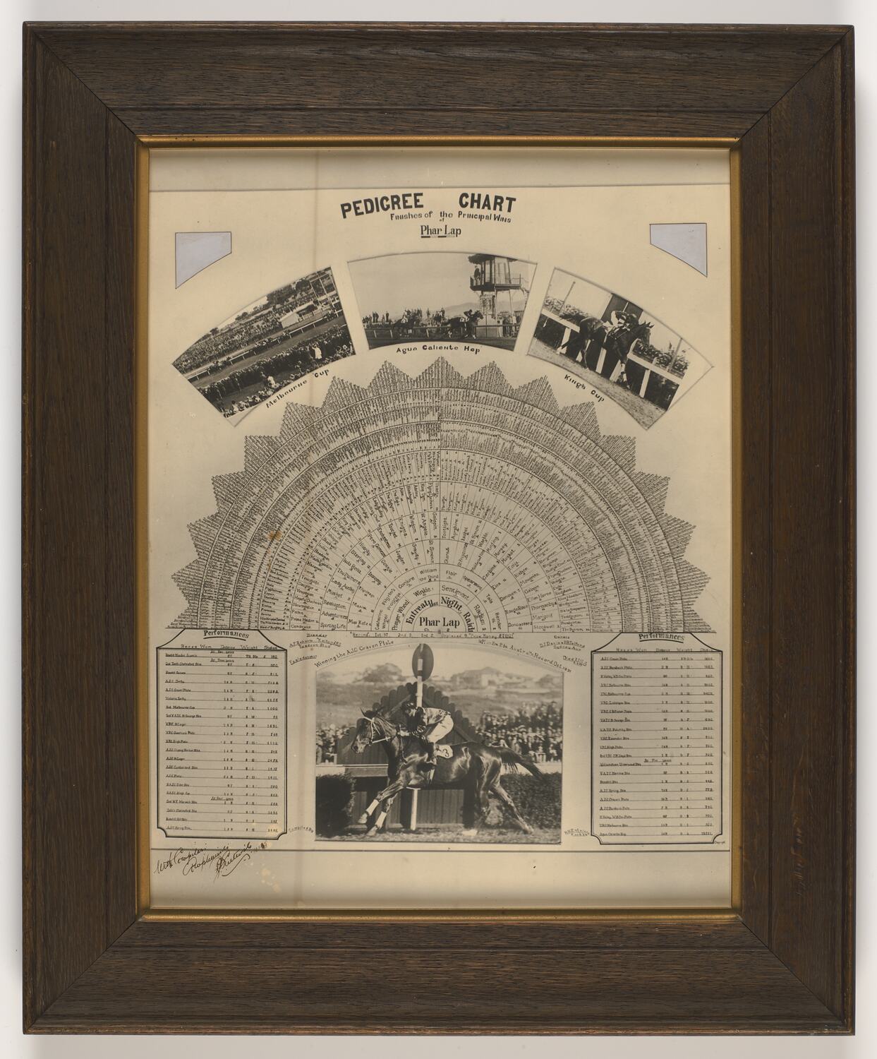 This pedigree charts was produced in the 1930s to commemorate the success of the race horse Phar Lap.