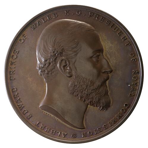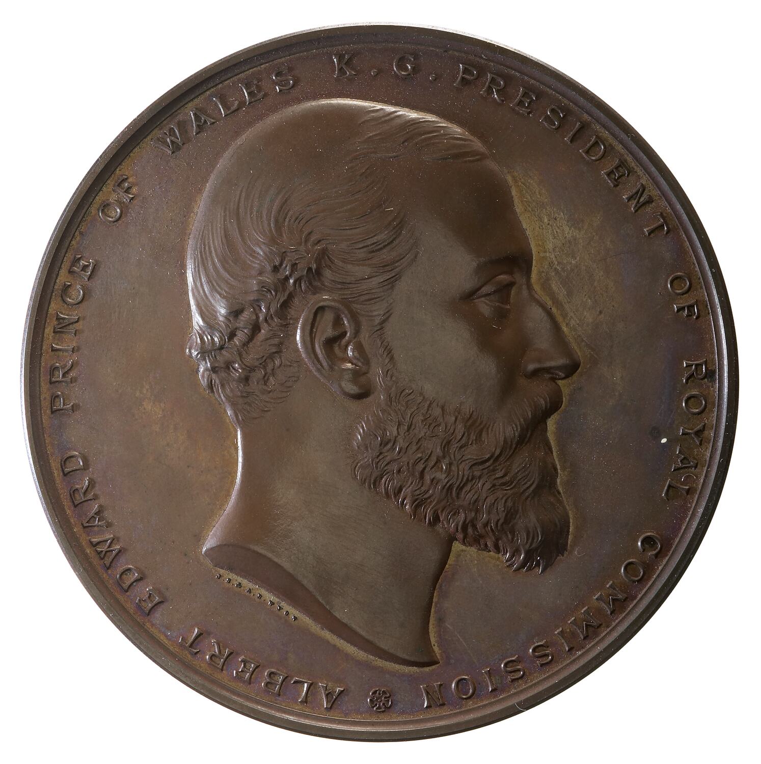 Head of Albert bearded facing right; around, ALBERT EDWARD PRINCE OF WALES K.G. PRESIDENT OF THE ROYAL COMMISSION * in tiny letters below the truncation, J.S. & A.B. WYON