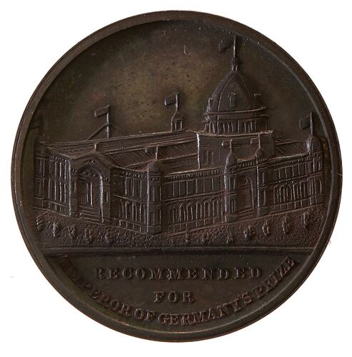 Obverse: RECOMMENDED FOR EMPEROR OF GERMANY'S PRIZE Reverse: MELBOURNE INTERNATIONAL EXHIBITION * 1880 *