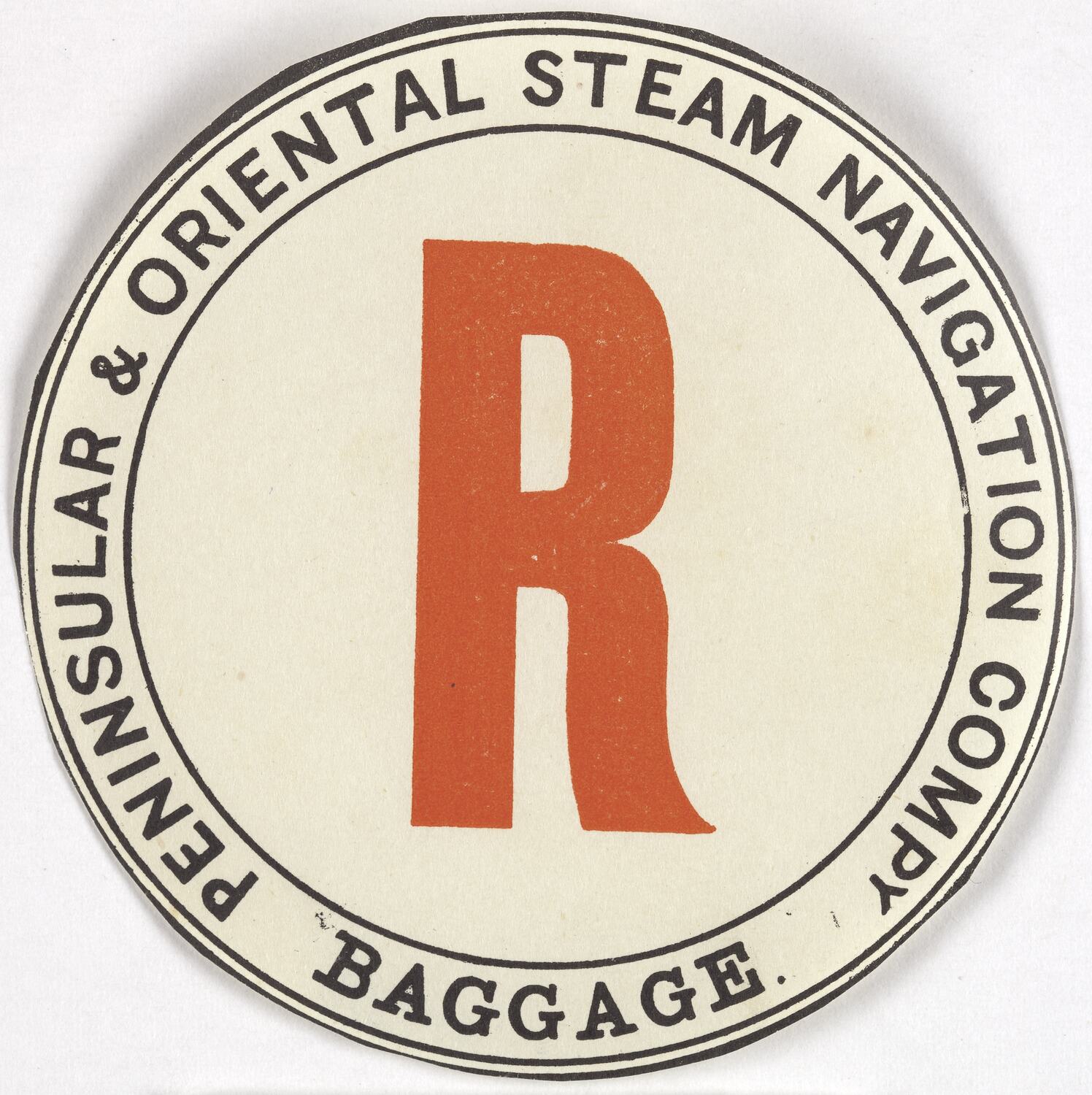 Text: PENNINSULAR & ORIENTAL STEAM NAVIGATION COMPANY/BAGGAGE/R.
