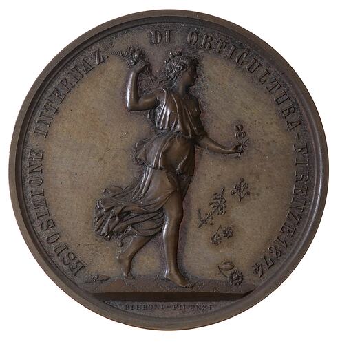 Other Details: Tuscan Horticultural Society prize medal, awarded to Horticultural Society of Victoria, but previously owned by Mueller. Mueller was the Victorian Government Botanist from 1852 until 1884, and the Director of the Botanical Gardens from 1857 to 1873. He was arguably Australia's most prominent 19th century scientist