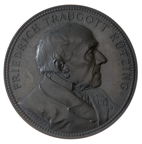 Bust facing right, around, FRIEDRICH TRAUGOTT KUTZING in tiny letters on truncation, A. SCHRAFF