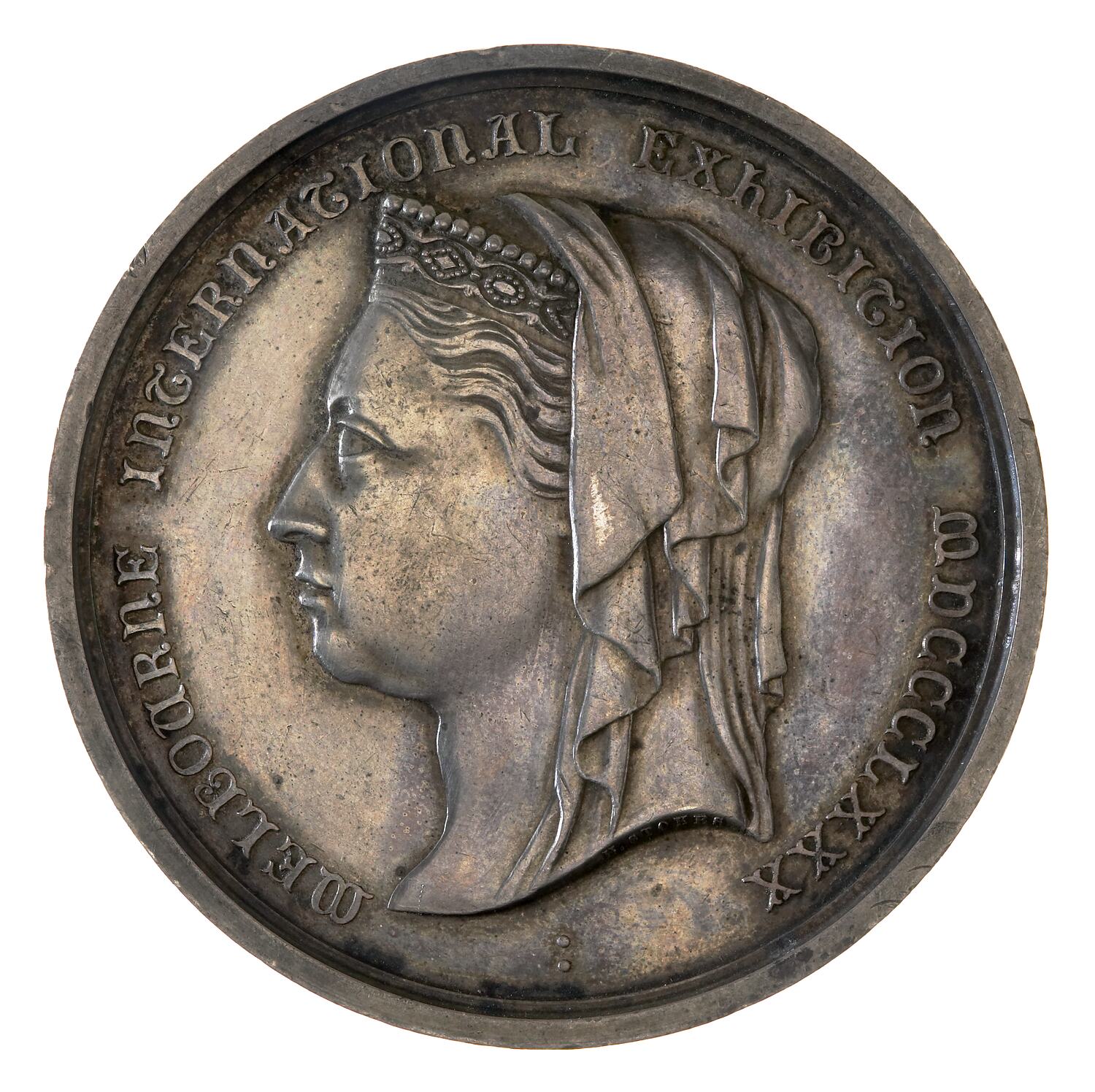Obverse: MELBOURNE INTERNATIONAL EXHIBITION MDCCCLXXX . around veiled head of Queen Victoria Reverse: "VITAM / EXCOLVERE / PER ARTES" within wreath, below wreath in small letters, H.STOKES Edge (impressed): THOMAS AITKEN, MELBOURNE _ PORTER