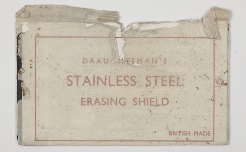 On envelope: DRAUGHTSMAN'S / STAINLESS STEEL / ERASING SHIELD / BRITISH MADE