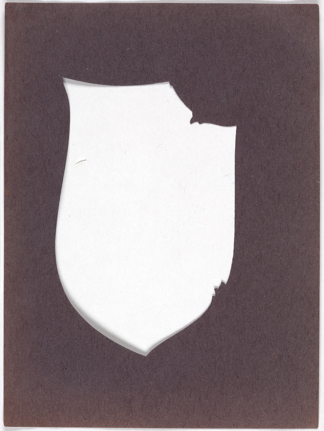 Negative Vignette, piece of black paper with a central cut-out in shield shape.